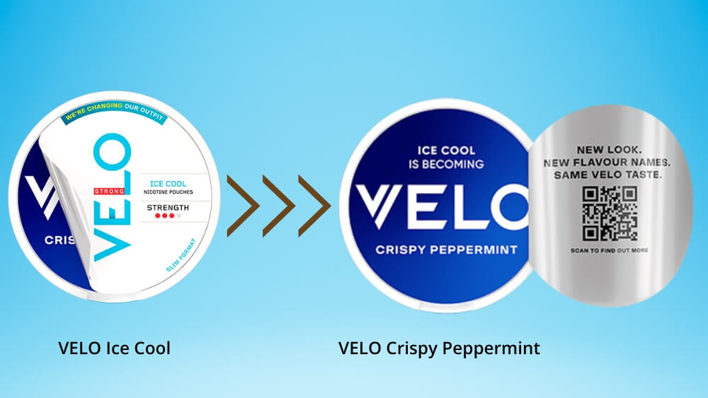 Tällä kertaa BAT on päättänyt muuttaa VELO brändin ulkoasua ja tuotteiden nimiä, jotta ne olisivat yhtenäiset kaikilla markkinoilla Eurooppaa, Yhdysvaltoja ja muuta maailmaa myöten. Uuden logon ja värikkäiden rasioiden ansiosta tuotteet on helpompi tunnistaa, riippumatta siitä missä päin maailmaa kuljet. Eli jos olisit vaikkapa matkalla Lontoossa ja haluaisit käydä ostamassa VELO nikotiinipusseja, löytäisit tutun rasian vaivatta hyllystä.